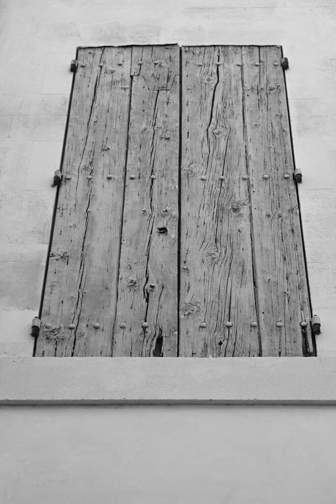 - Fermeture par espagnolette en rondin plein et crochets courbes, poignée pleine